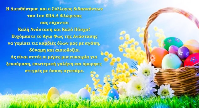 Το 1ο ΕΠΑ.Λ. Φλώρινας σας εύχεται Καλή Ανάσταση και Καλό Πάσχα με υγεία !!