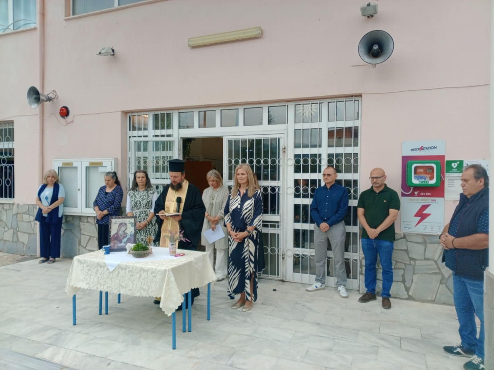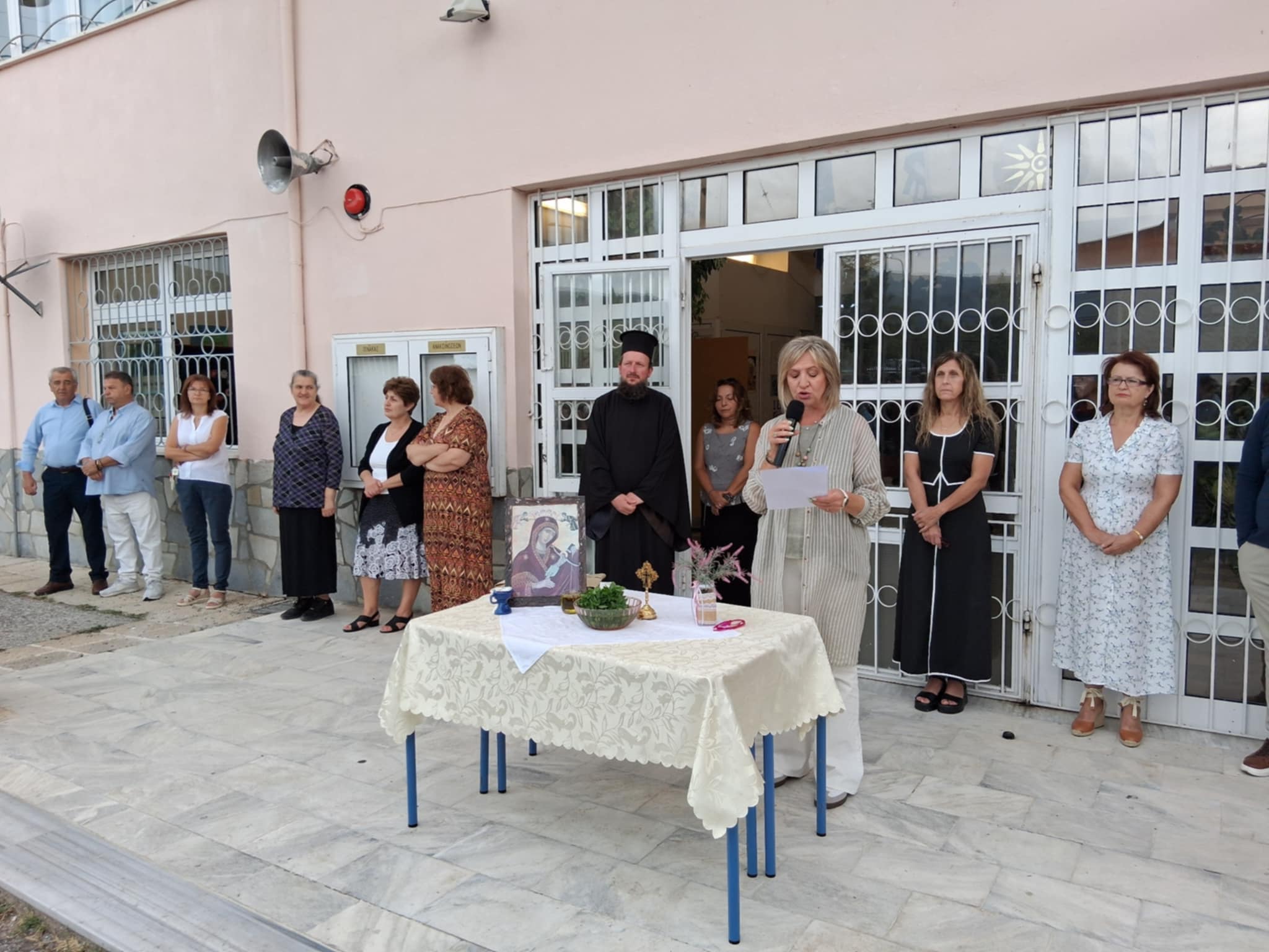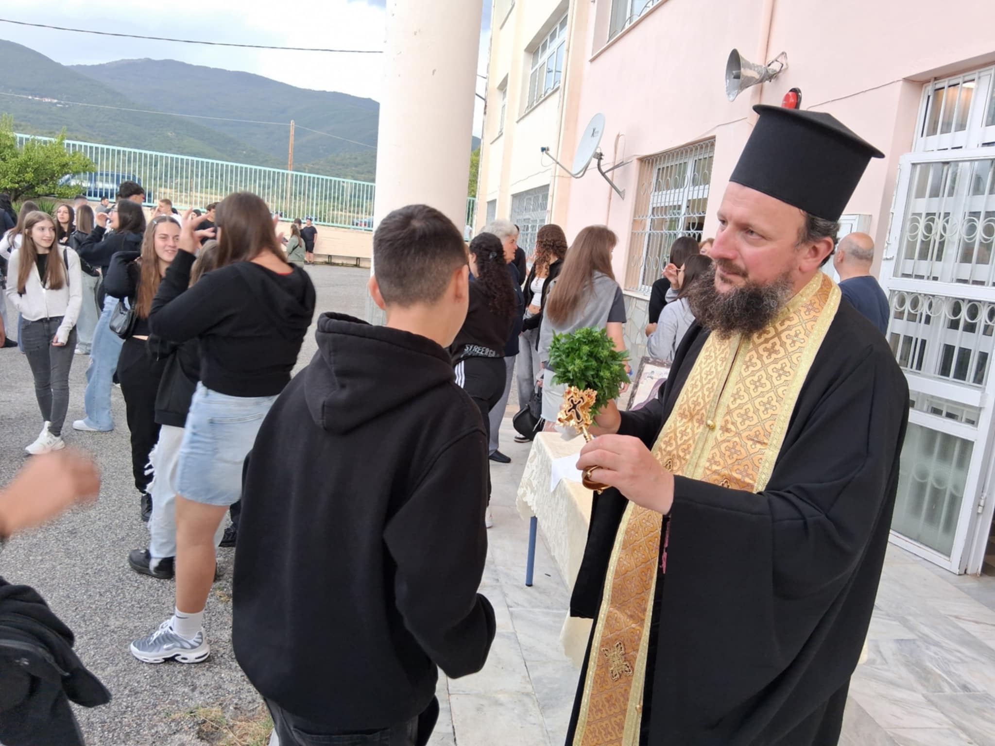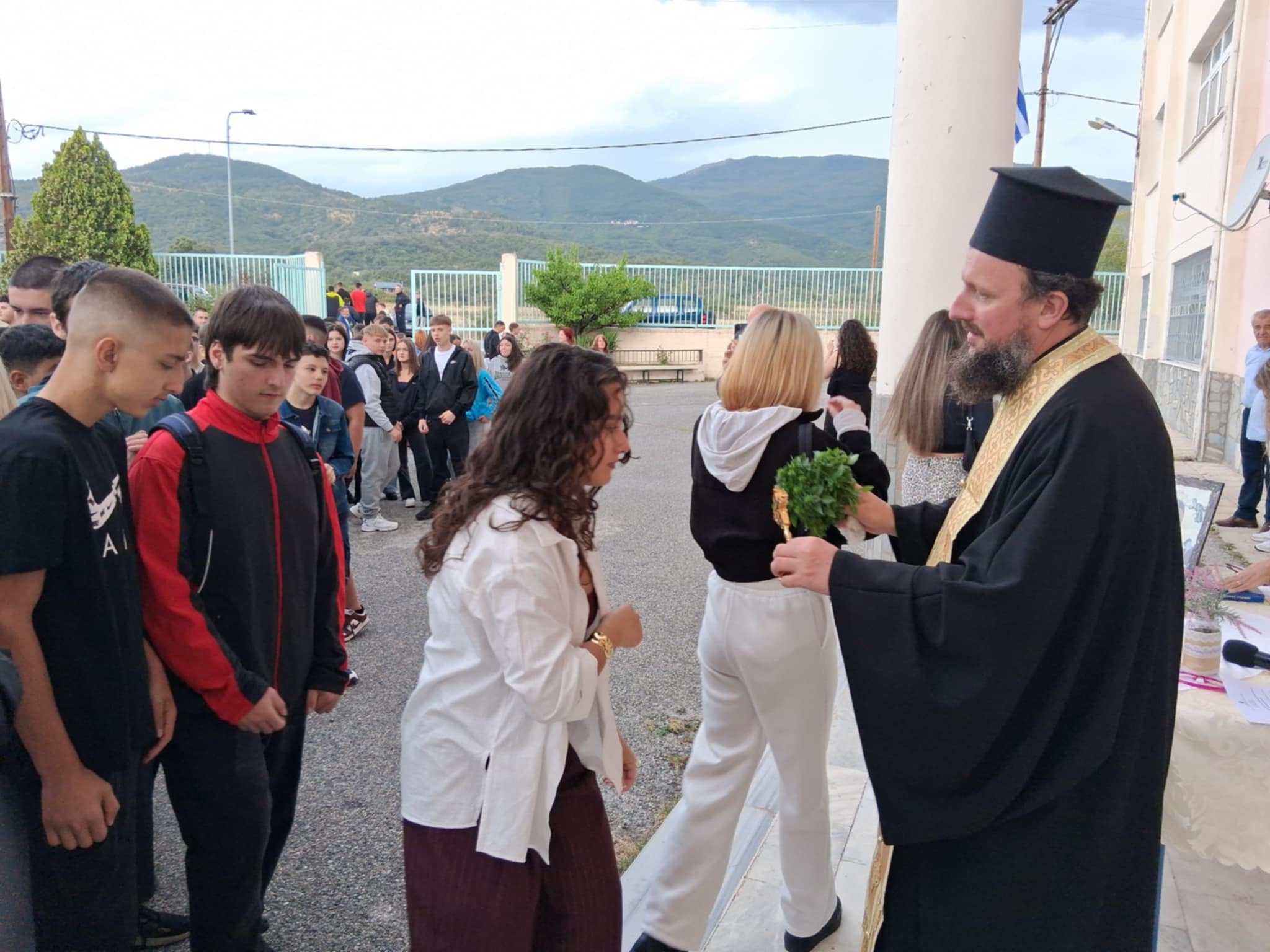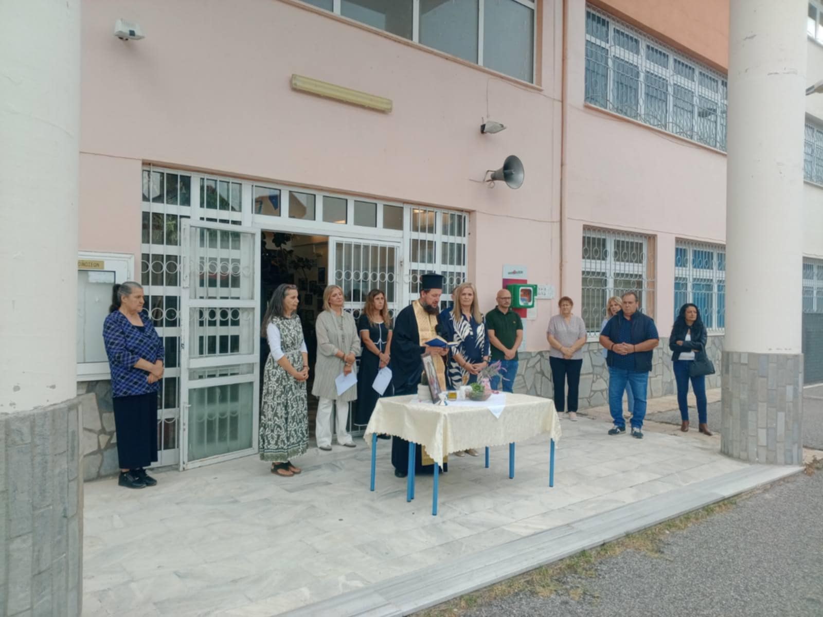 Η τελετή έγινε στον προαύλιο χώρο του σχολείου, σε ατμόσφαιρα σεβασμού και συγκίνησης. Τον αγιασμό τέλεσε ο πάτερ Αγαθάγγελος, ο οποίος ευλόγησε τους μαθητές και τους εκπαιδευτικούς, ευχόμενος υγεία, πρόοδο και δύναμη για τη χρονιά που ξεκινά.