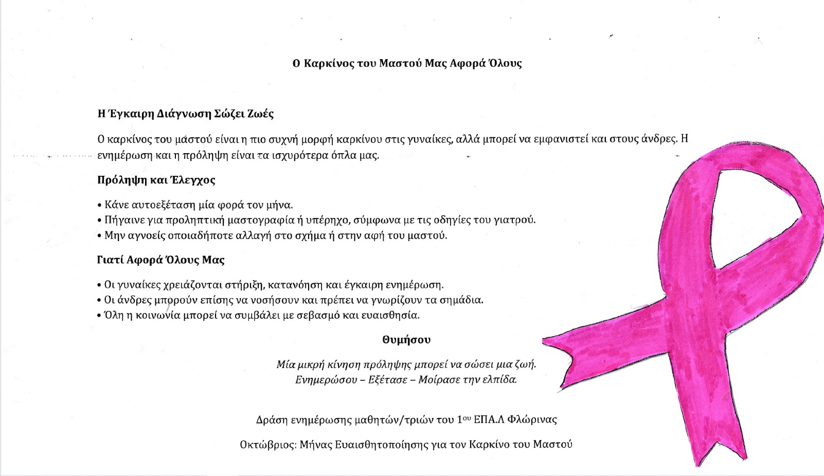 Οκτώβριος: Μήνας Ευαισθητοποίησης για τον Καρκίνο του Μαστού.