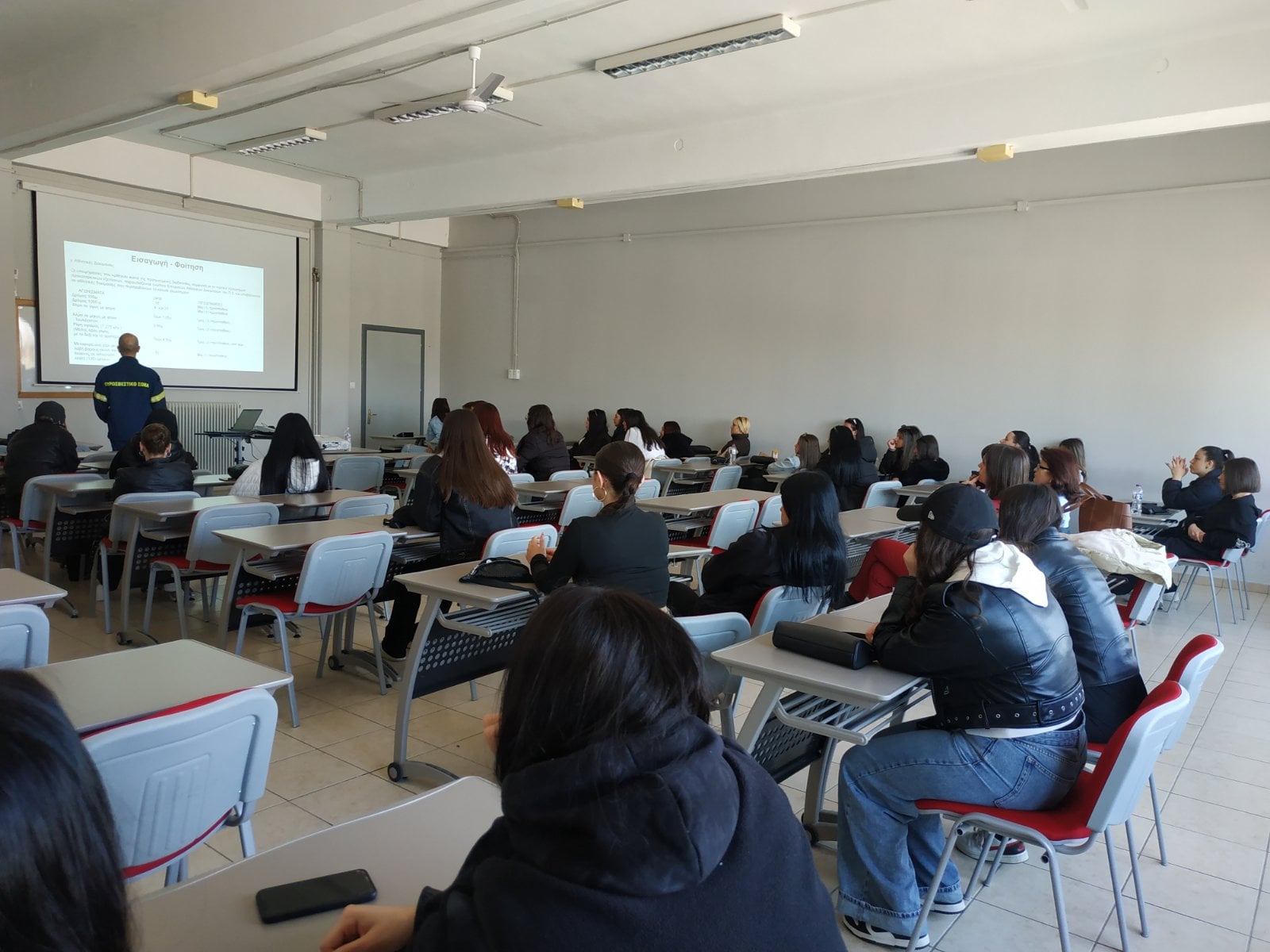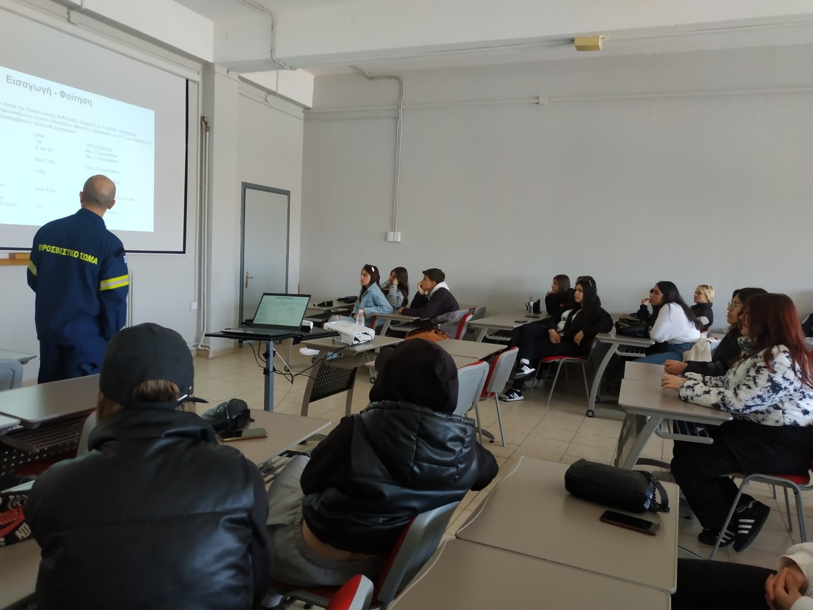 Οι μαθητές/τριες ενημερώθηκαν για τη διάρκεια της εκπαίδευσης (δύο Κύκλοι Σπουδών), την έμφαση που δίνεται στην πρακτική άσκηση και στη διατήρηση της άψογης φυσικής κατάστασης των εισαχθέντων, τους ιδιαίτερα εξειδικευμένους τομείς εκπαίδευσης, την οικονομική αποζημίωση που λαμβάνουν οι Δόκιμοι Πυροσβέστες κατά τη διάρκεια της φοίτησής τους, πληροφορίες για τη διαμονή και σίτιση εντός της