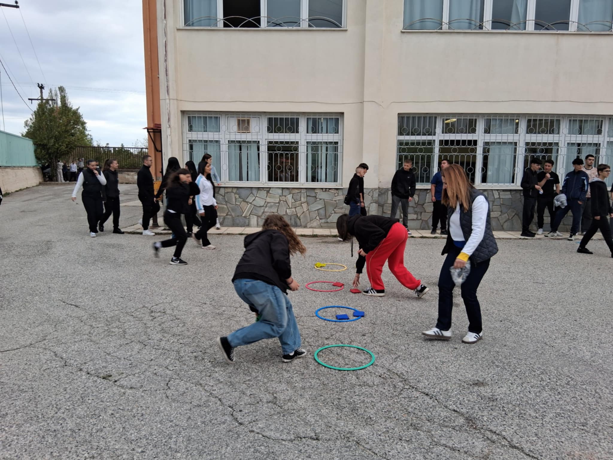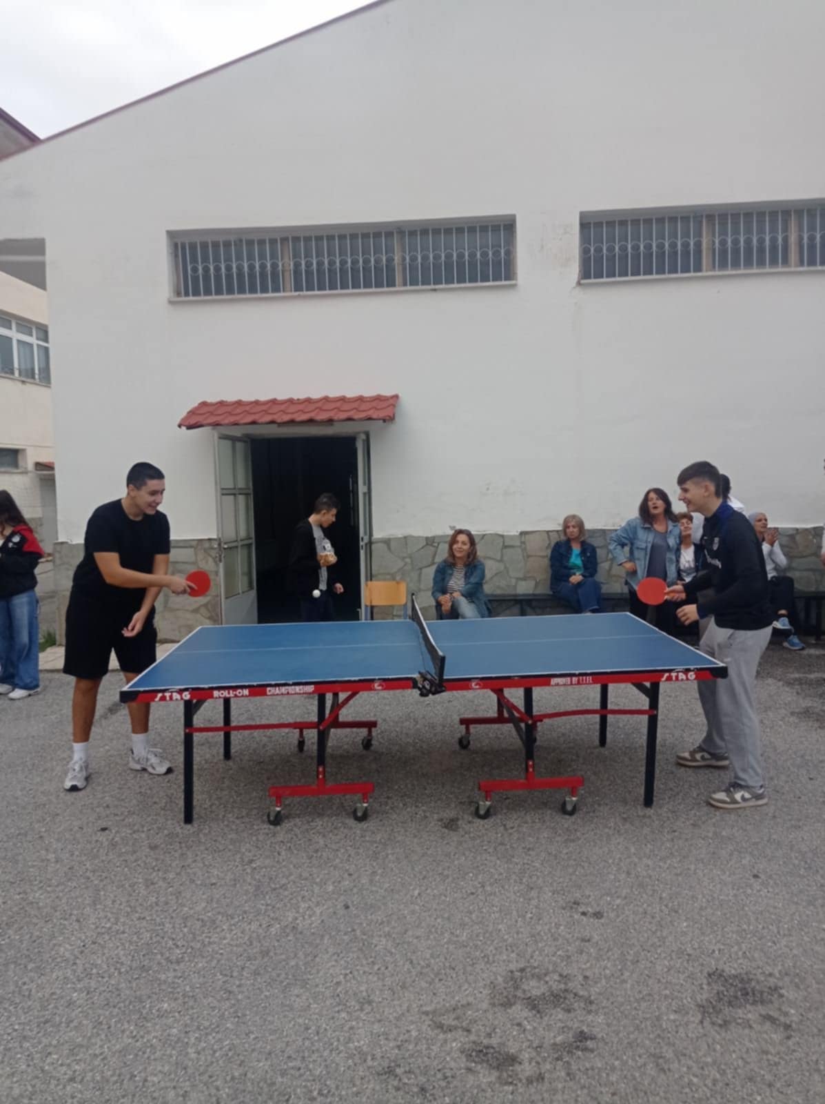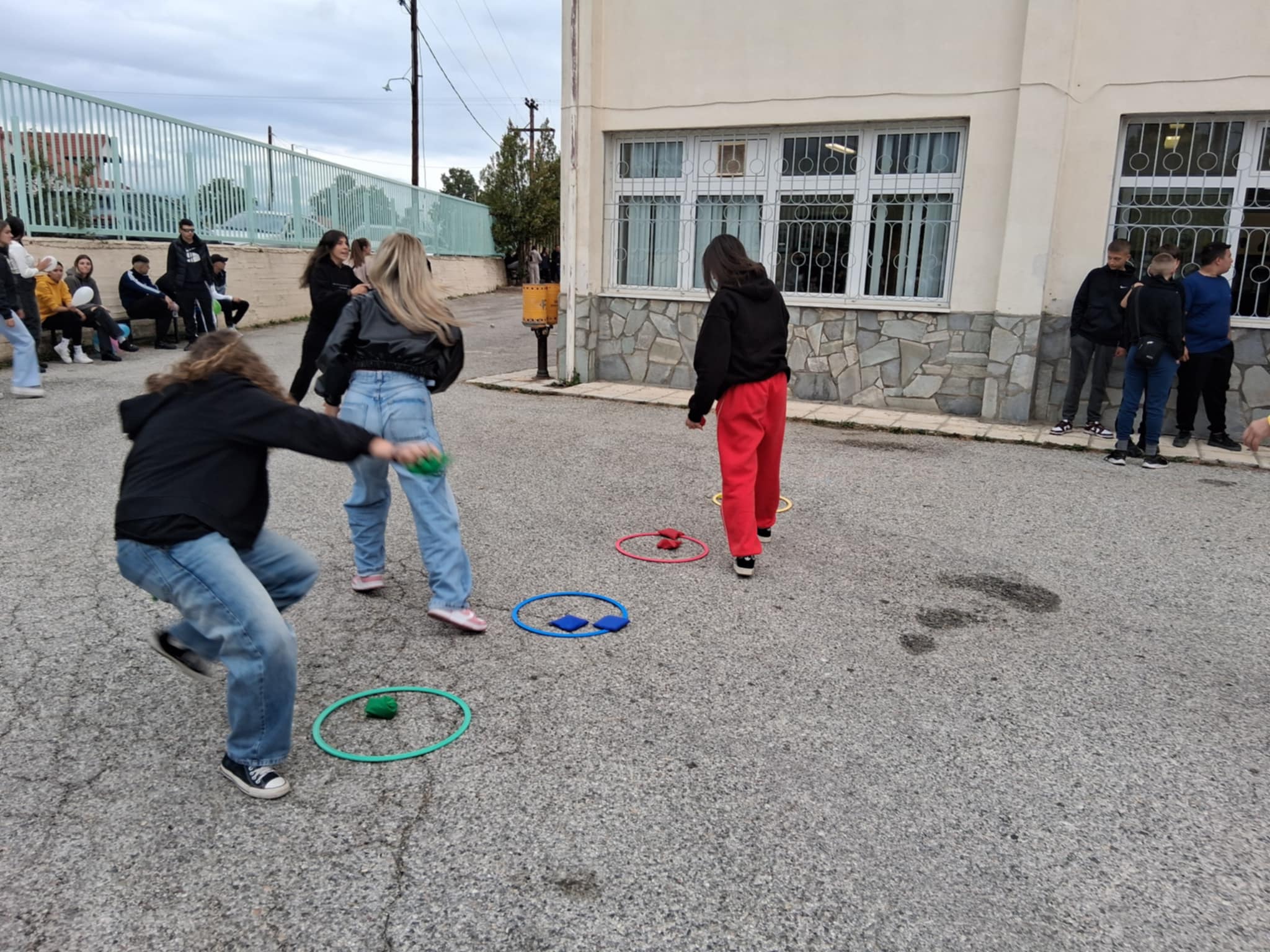 Η αυλή του σχολείου μας μετατράπηκε σε έναν πολύχρωμο και ζωντανό χώρο παιχνιδιού, χαράς και συνεργασίας. Μαθητές και καθηγητές συμμετείχαν ενεργά σε ποικίλες αθλητικές δραστηριότητες όπως μπάσκετ, βόλεϊ, πινγκ πονγκ, σκοινάκι, επιτραπέζια παιχνίδια, σκάκι, καθώς και παραδοσιακά παιχνίδια εμπνευσμένα από την αρχαιότητα.