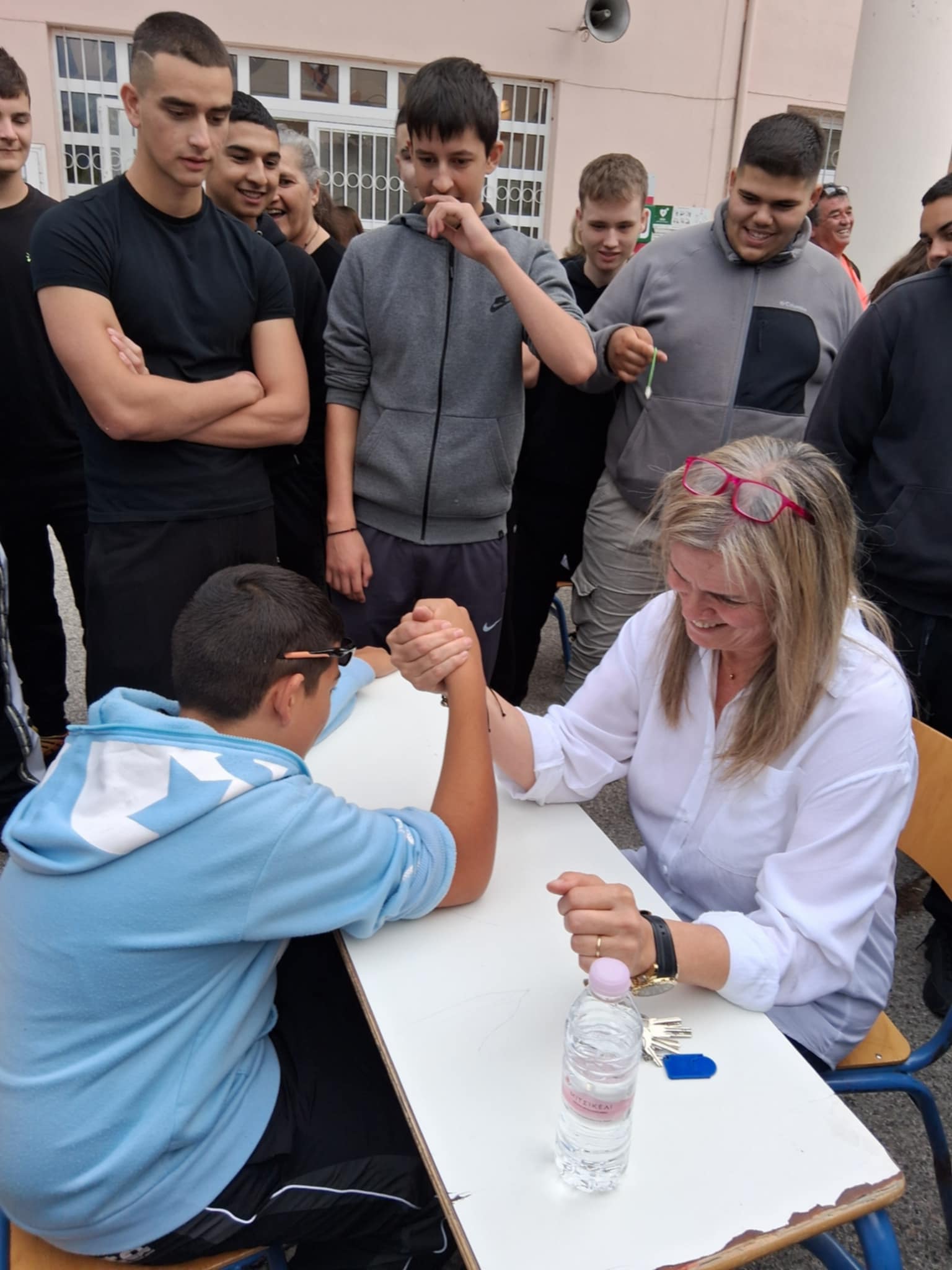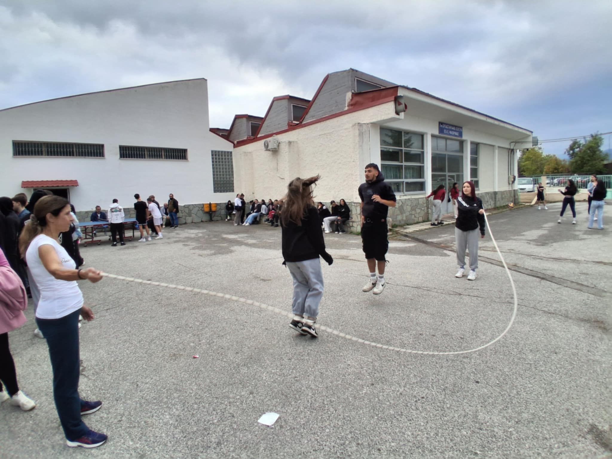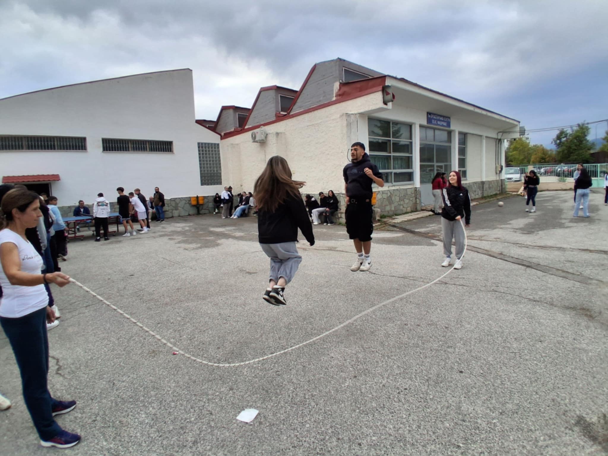 Η αυλή του σχολείου μας μετατράπηκε σε έναν πολύχρωμο και ζωντανό χώρο παιχνιδιού, χαράς και συνεργασίας. Μαθητές και καθηγητές συμμετείχαν ενεργά σε ποικίλες αθλητικές δραστηριότητες όπως μπάσκετ, βόλεϊ, πινγκ πονγκ, σκοινάκι, επιτραπέζια παιχνίδια, σκάκι, καθώς και παραδοσιακά παιχνίδια εμπνευσμένα από την αρχαιότητα.