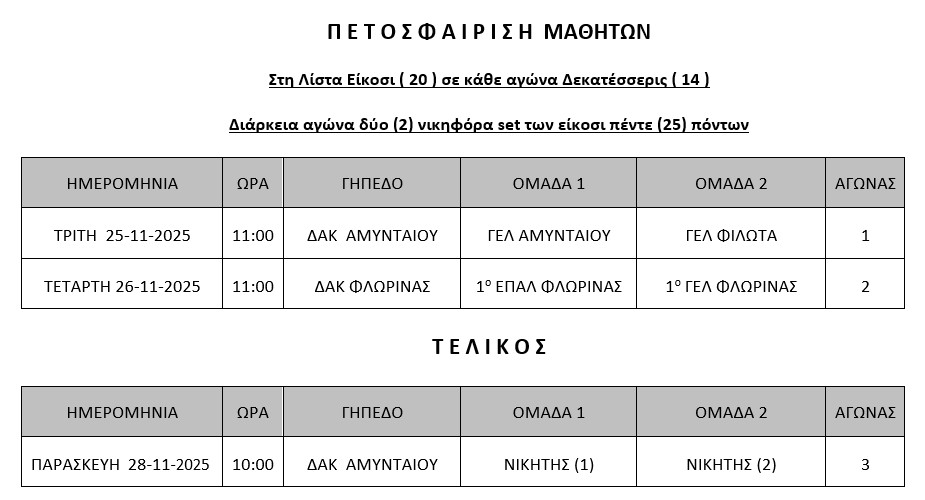 ΠΡΟΓΡΑΜΜΑ Α΄ΦΑΣΗΣ ΠΑΝΕΛΛΗΝΙΩΝ ΣΧΟΛΙΚΩΝ ΑΓΩΝΩΝ