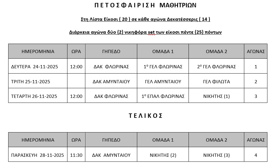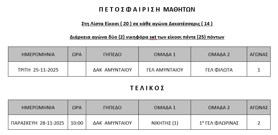 ΟΜΑΔΙΚΩΝ ΑΘΛΗΜΑΤΩΝ ΛΥΚΕΙΩΝ 2025-2026
