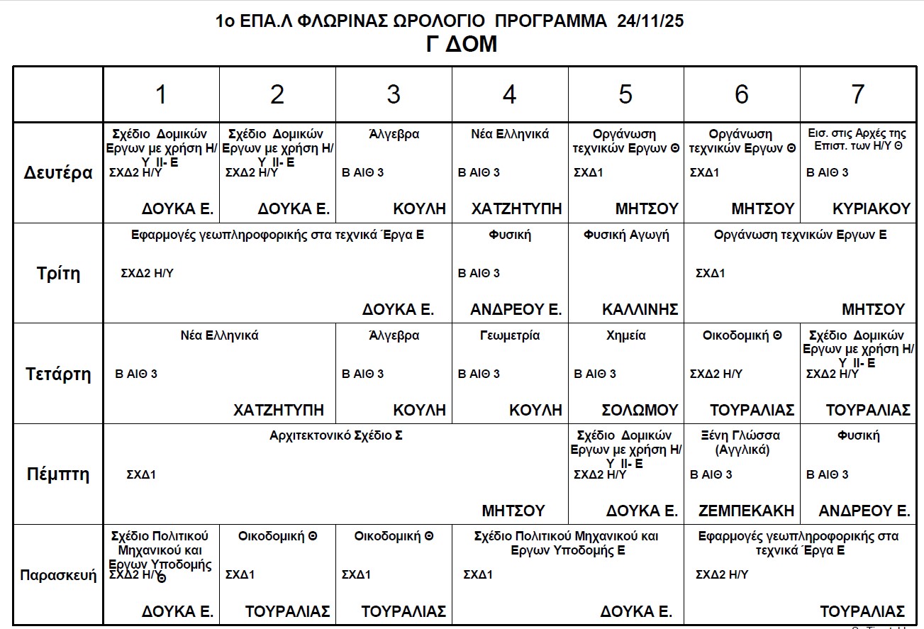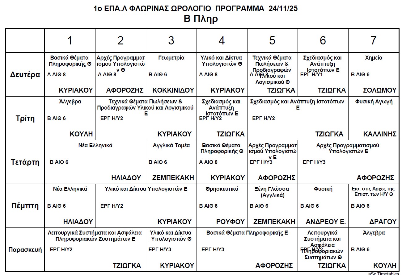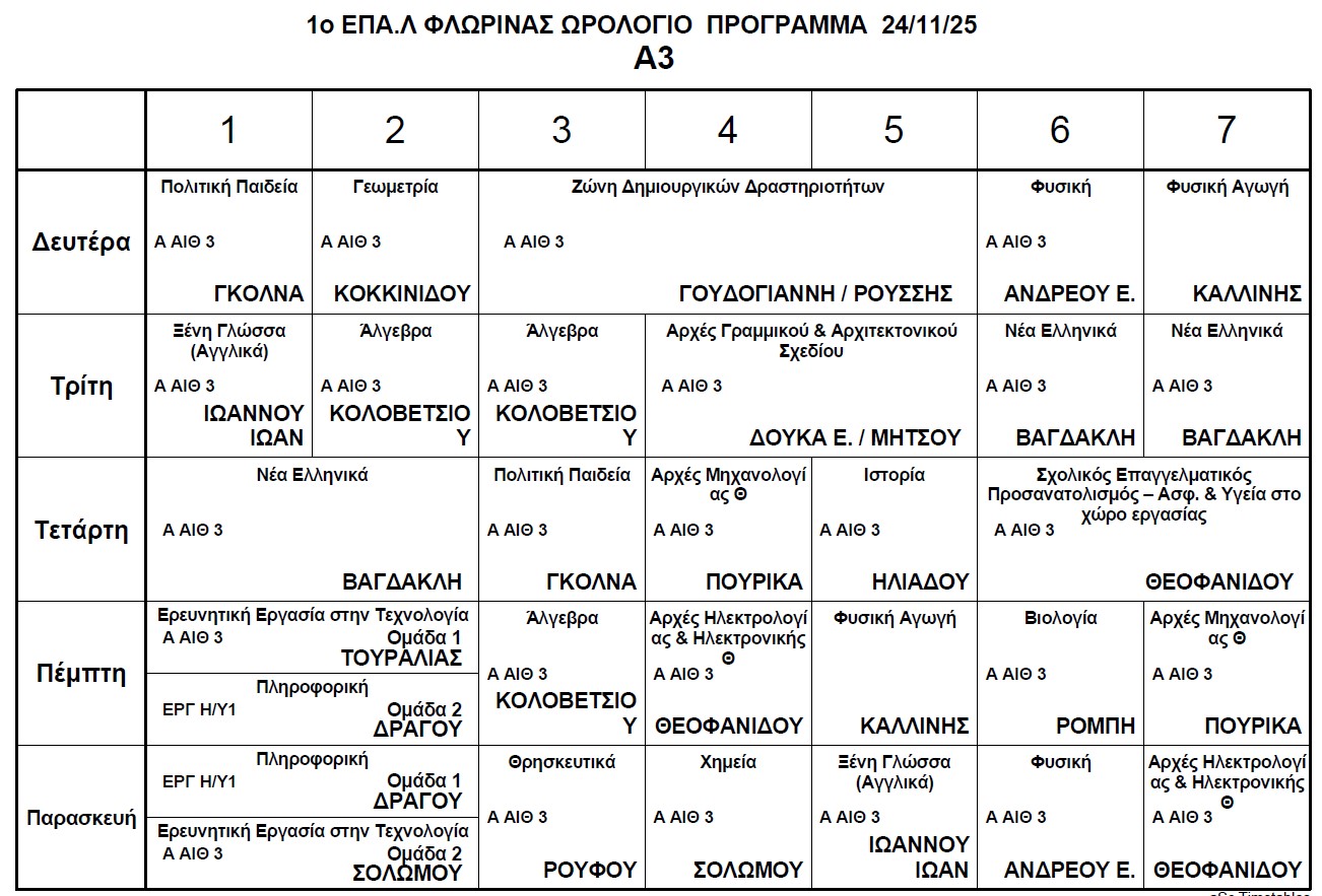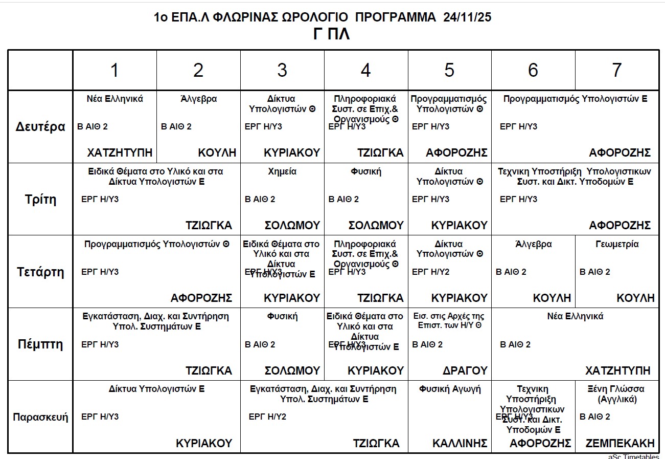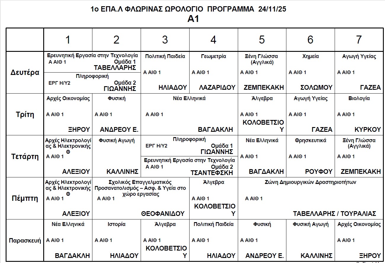 Ωρολόγιο Πρόγραμμα μαθημάτων Τηλεκπαίδευσης