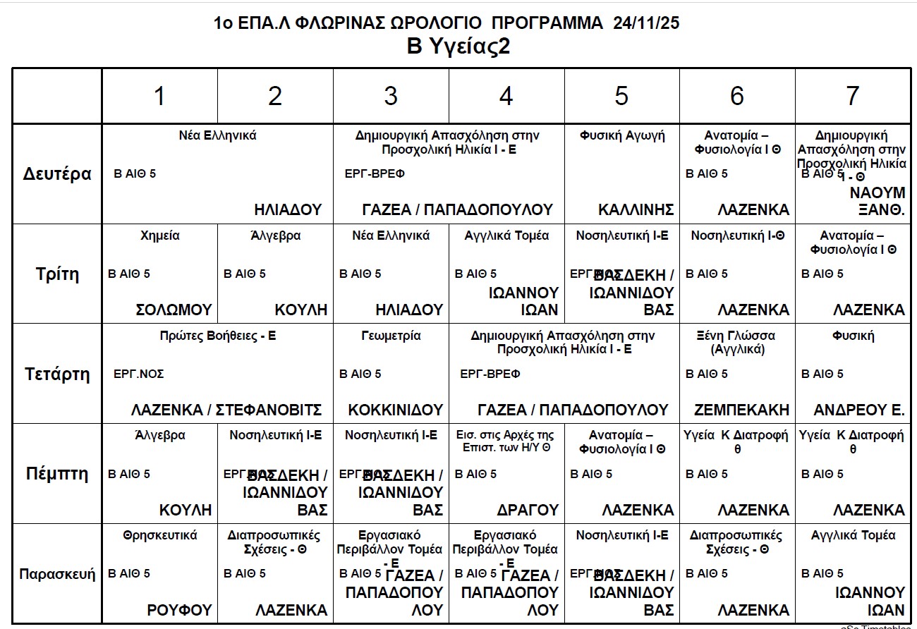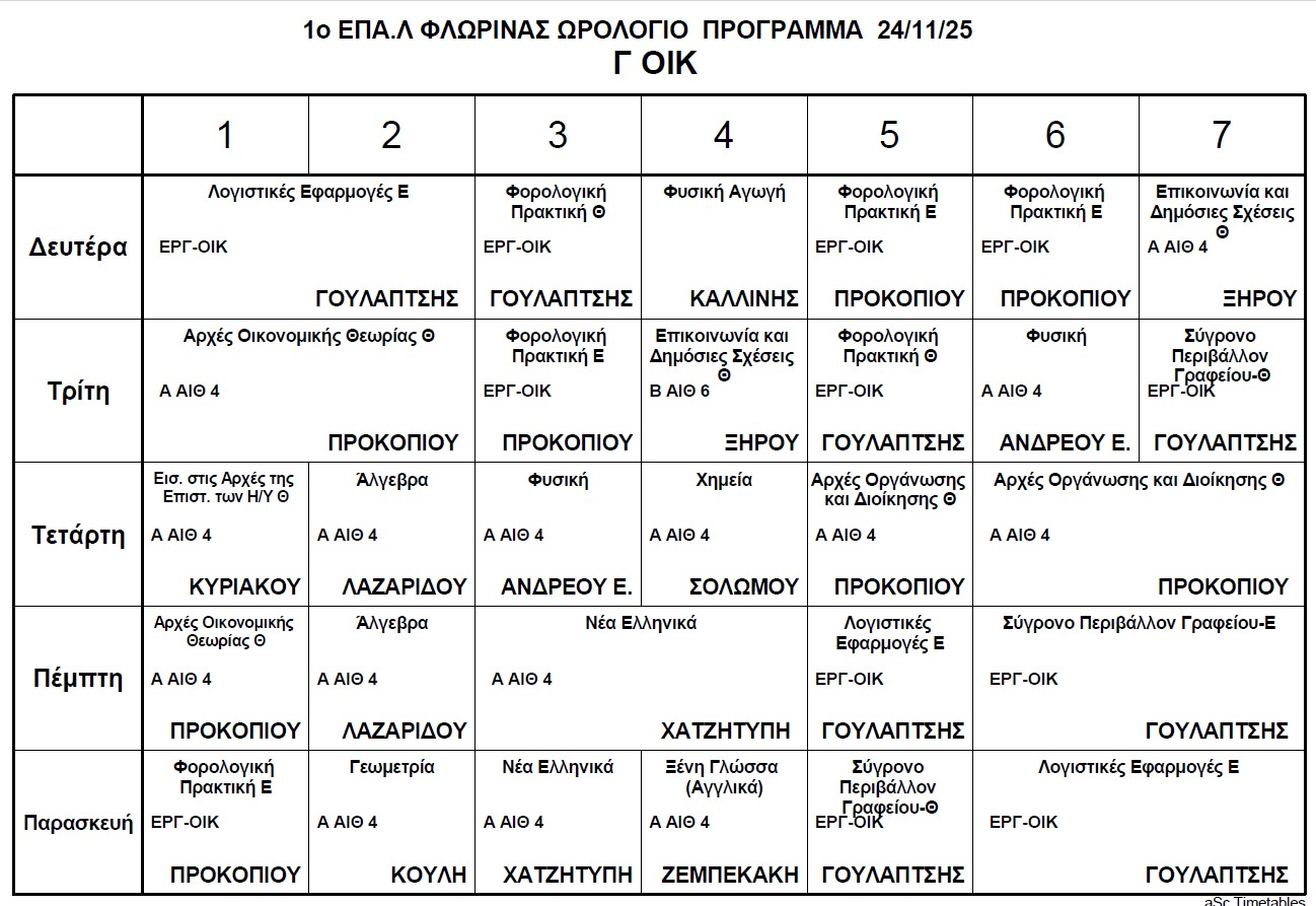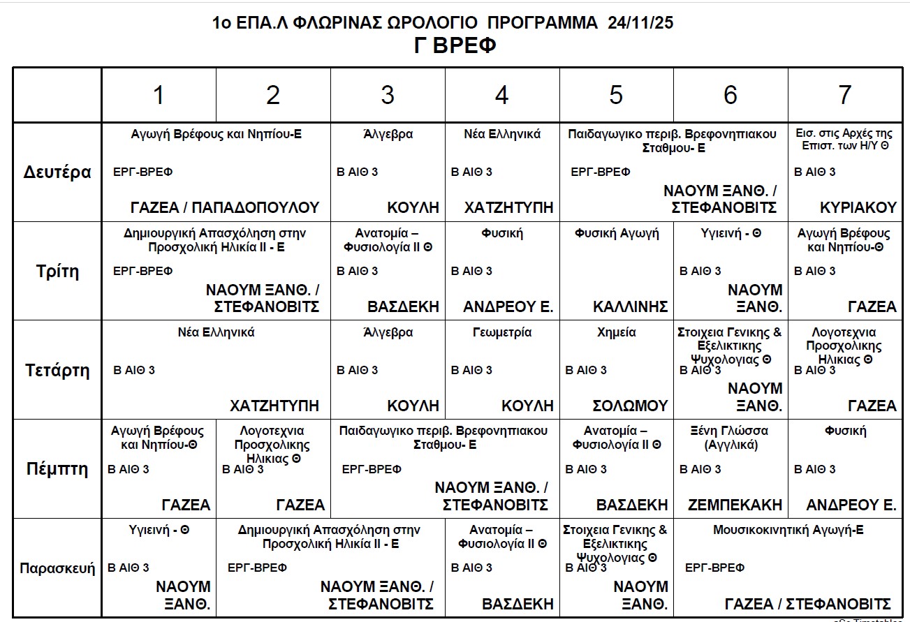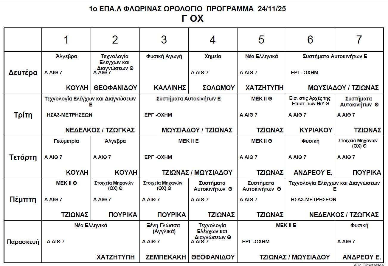 Ωρολόγιο Πρόγραμμα μαθημάτων Τηλεκπαίδευσης