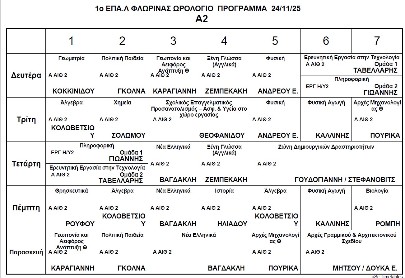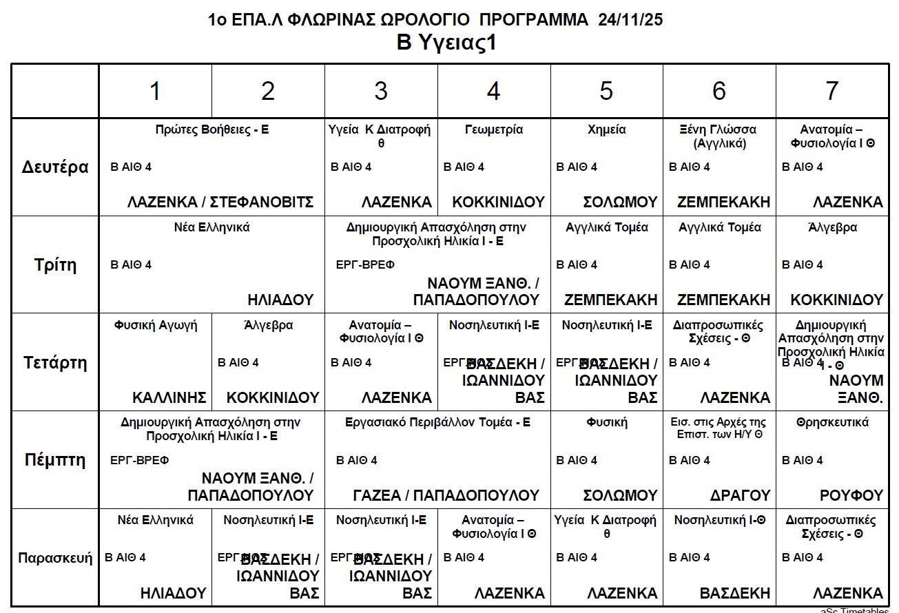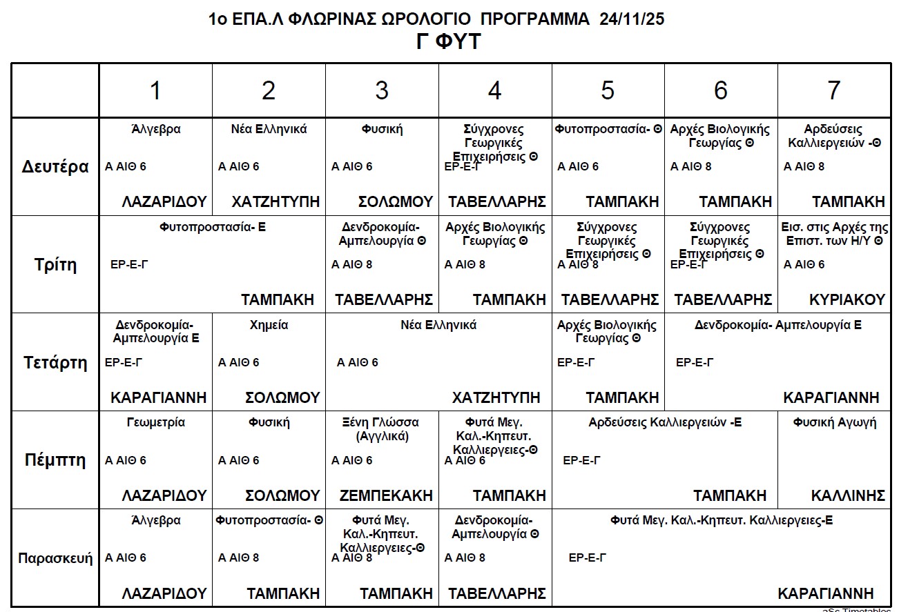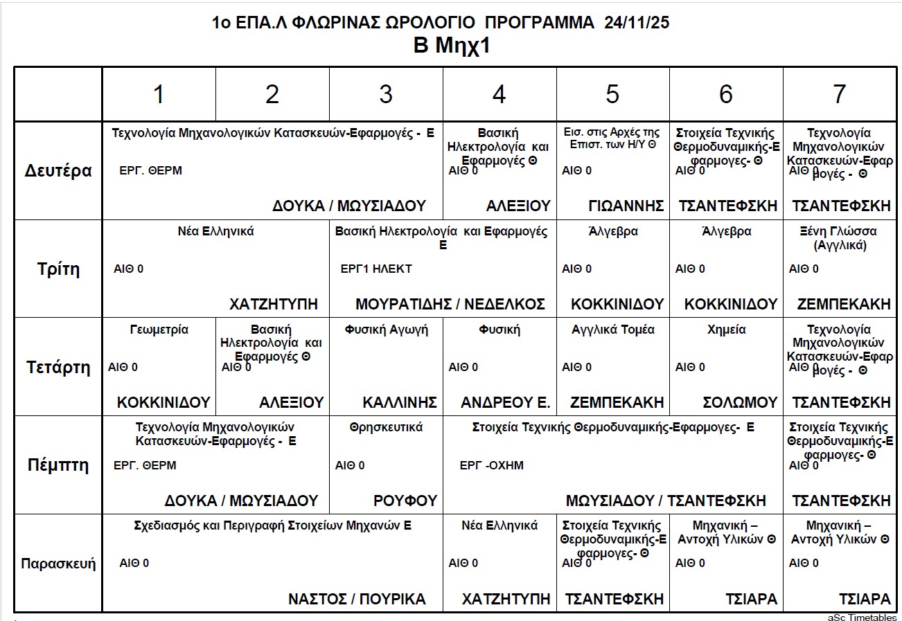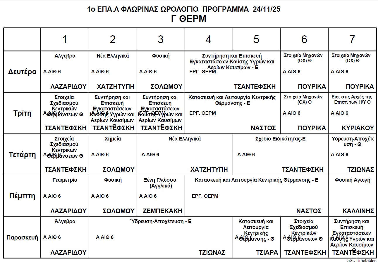 Ωρολόγιο Πρόγραμμα μαθημάτων Τηλεκπαίδευσης