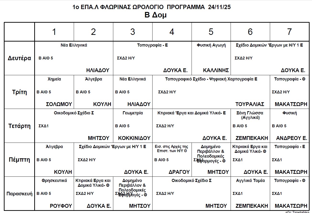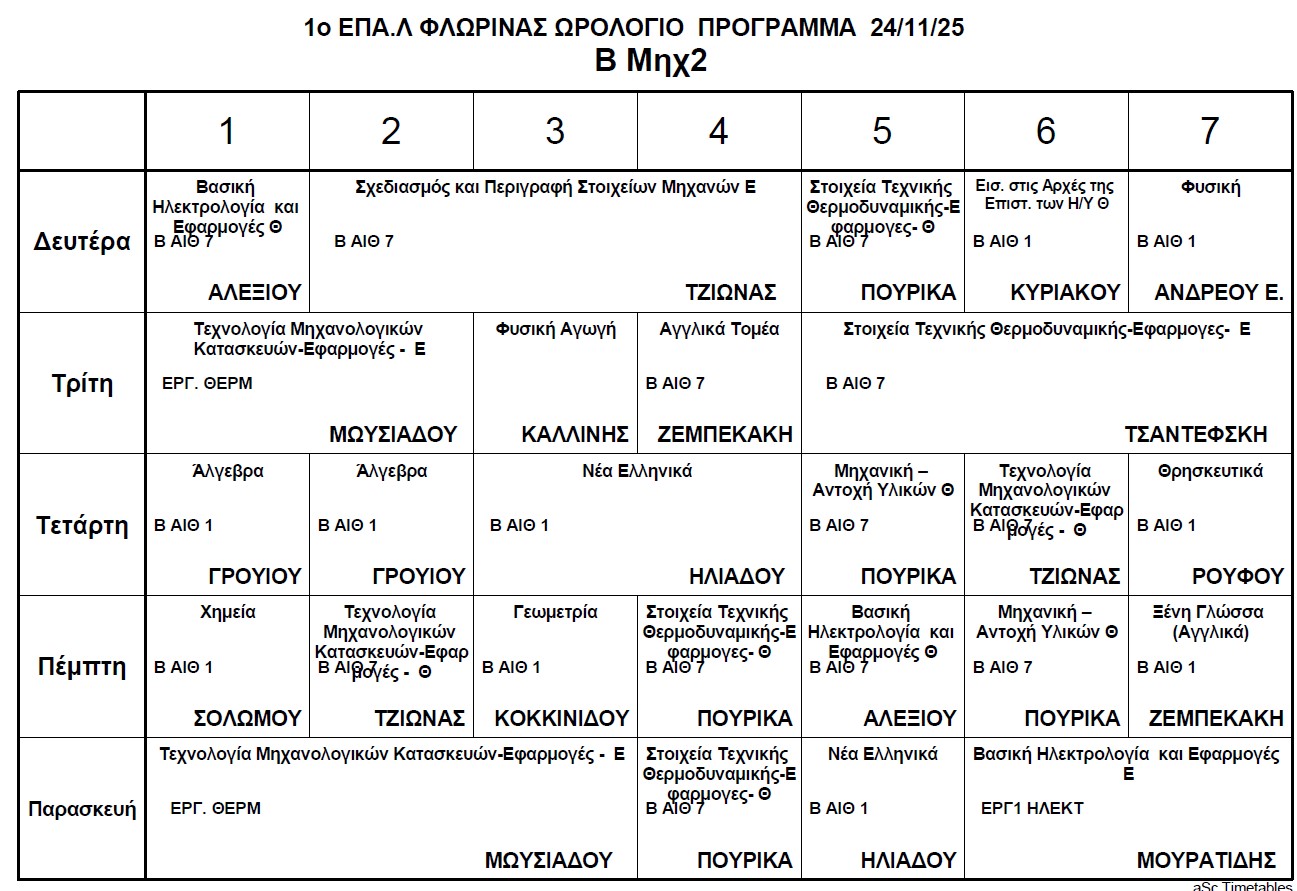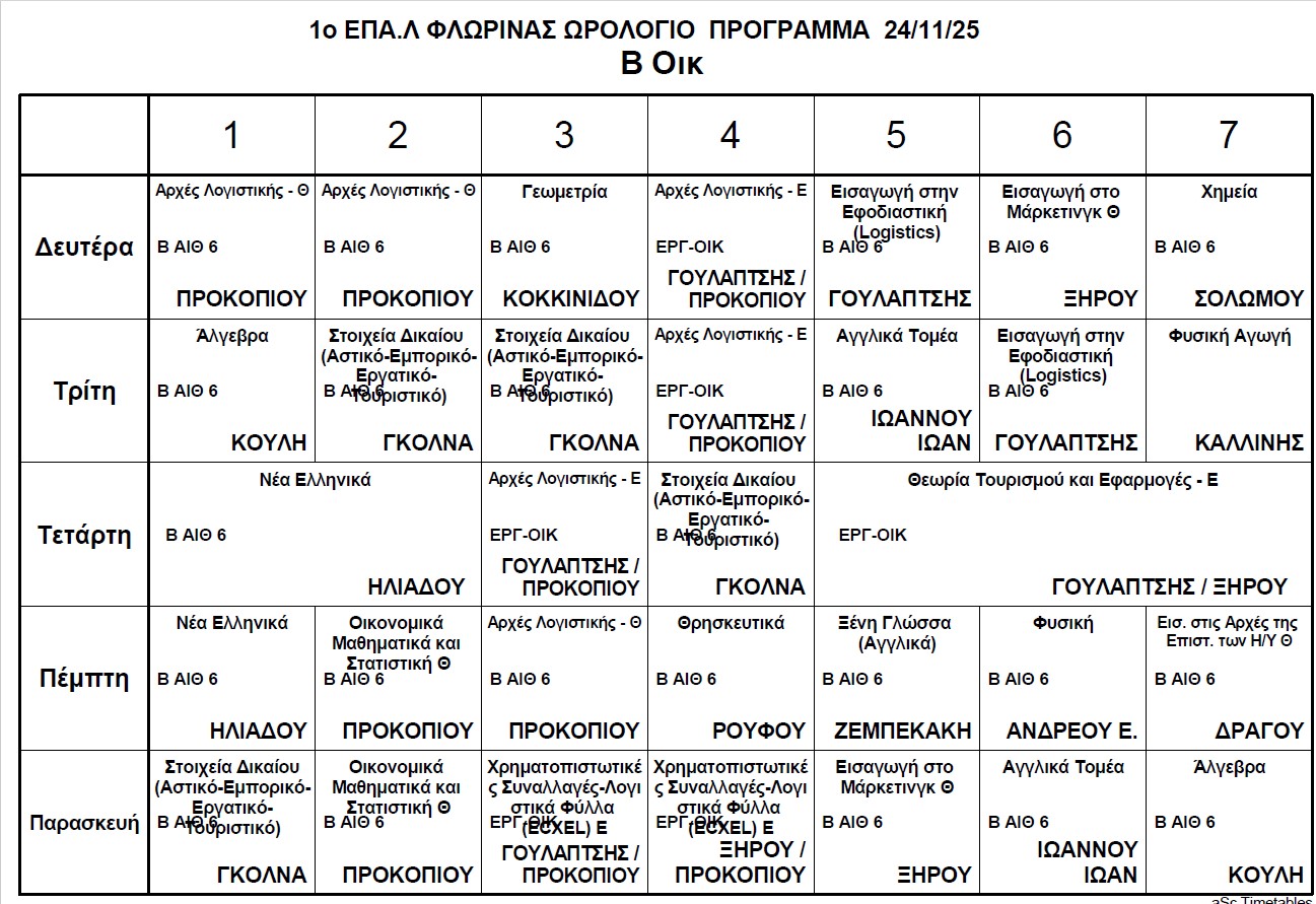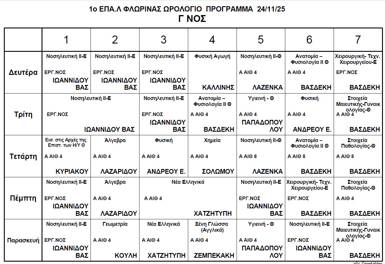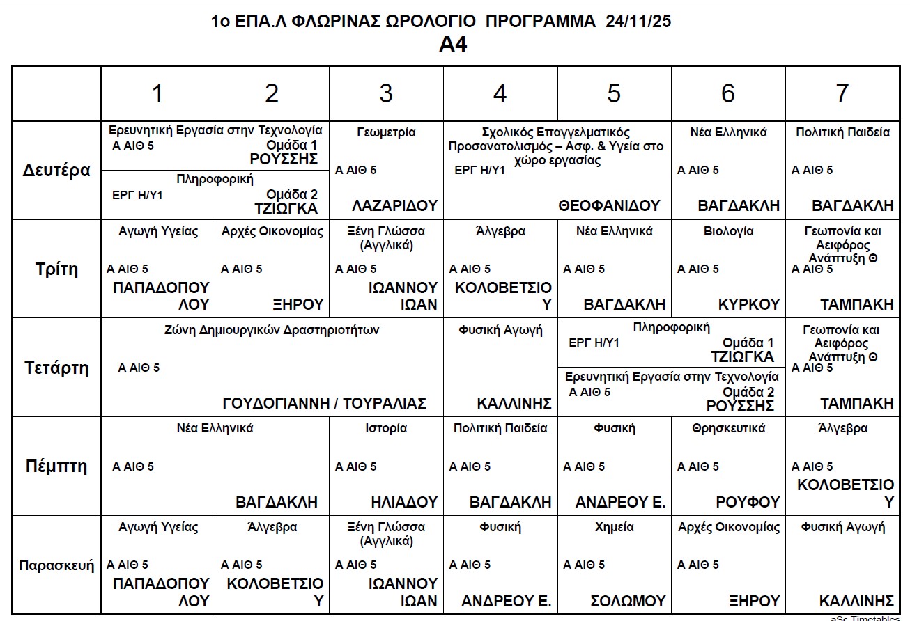 Ωρολόγιο Πρόγραμμα μαθημάτων Τηλεκπαίδευσης