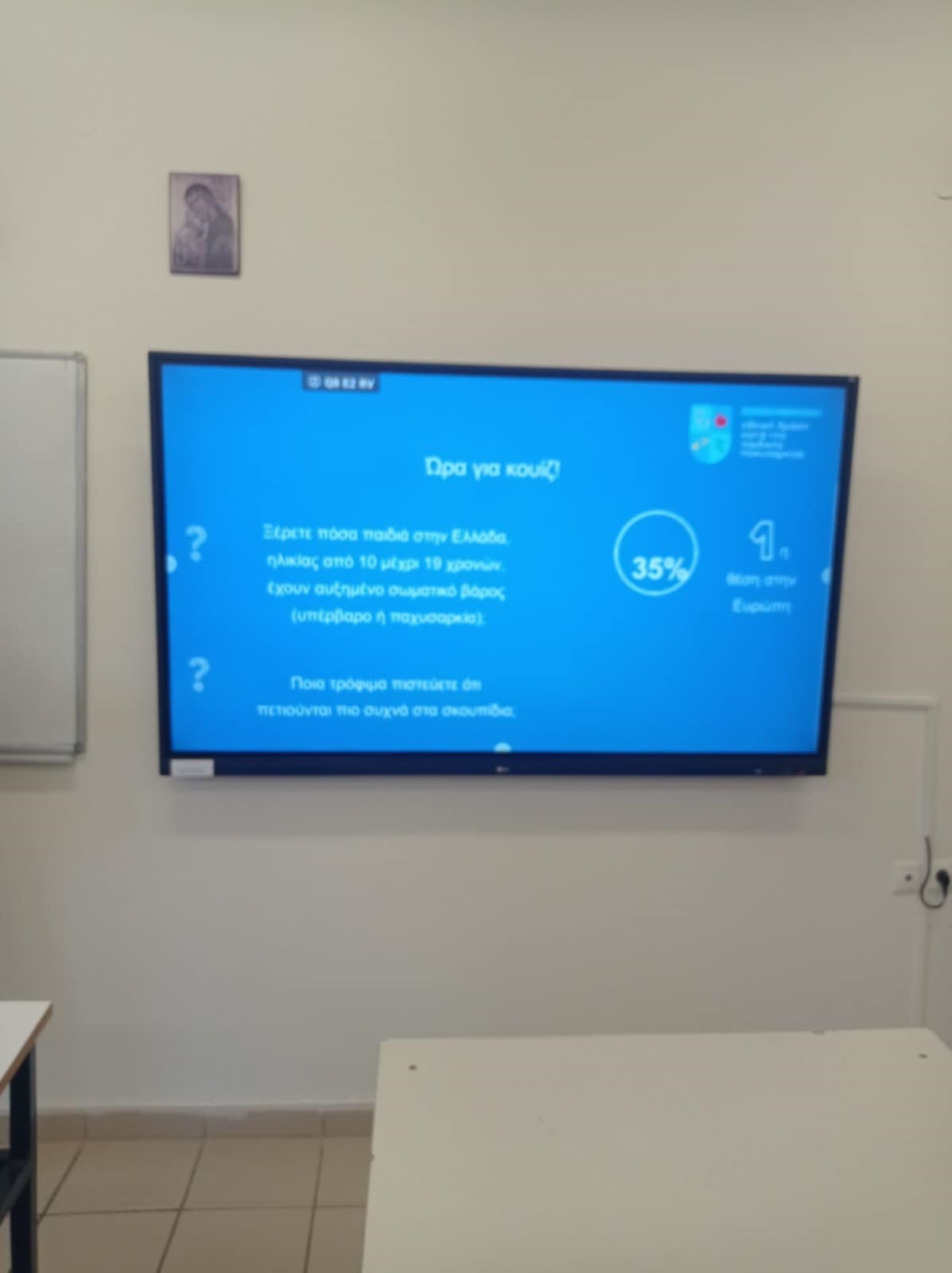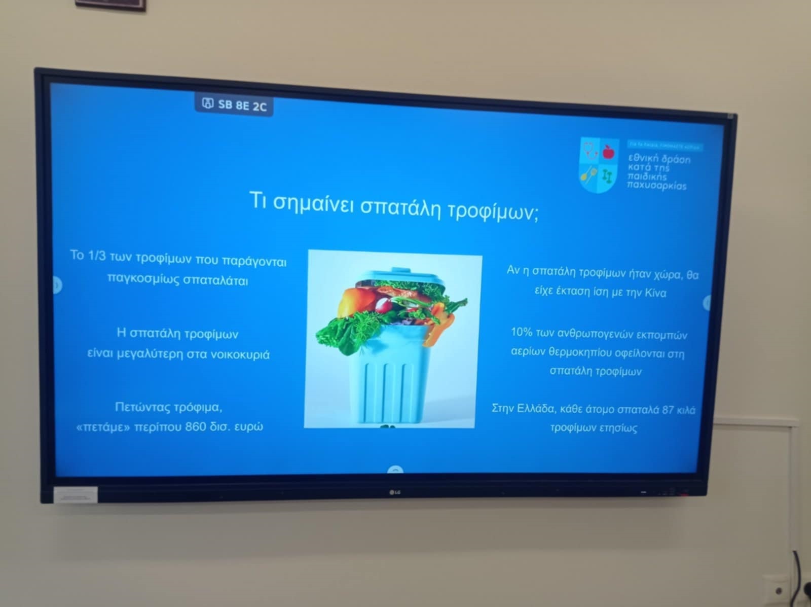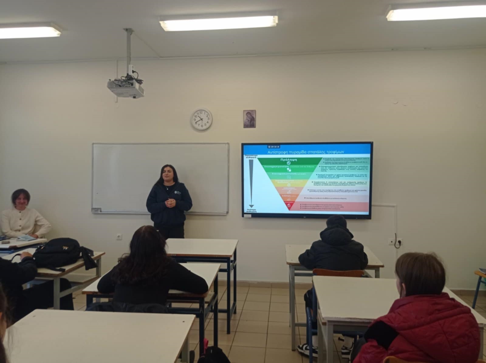 Η κ. Σταυρούλα Αντάρα, κοινωνιολόγος, μέσα από προβολή επιλεγμένου οπτικοακουστικού υλικού και ομαδική συζήτηση, βοήθησε τους μαθητές να προβληματιστούν γύρω από την αξία της ισορροπημένης και υγιεινής διατροφής. Παράλληλα, τους ενθάρρυνε να αναπτύξουν κριτική σκέψη σχετικά με τις διατροφικές τους επιλογές και τον τρόπο με τον οποίο αυτές επηρεάζουν την υγεία και το περιβάλλον.