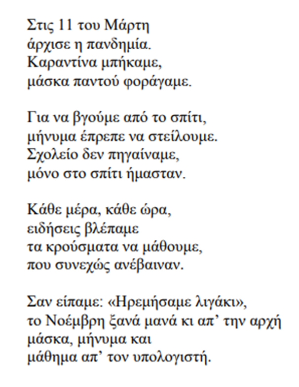 Σαν άρχισε η καραντίνα… (Σιδηροπούλου Ελένη, 2ο Γυμνάσιο Φλώρινας)